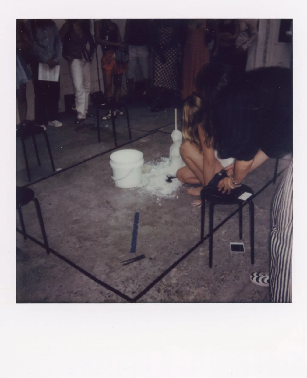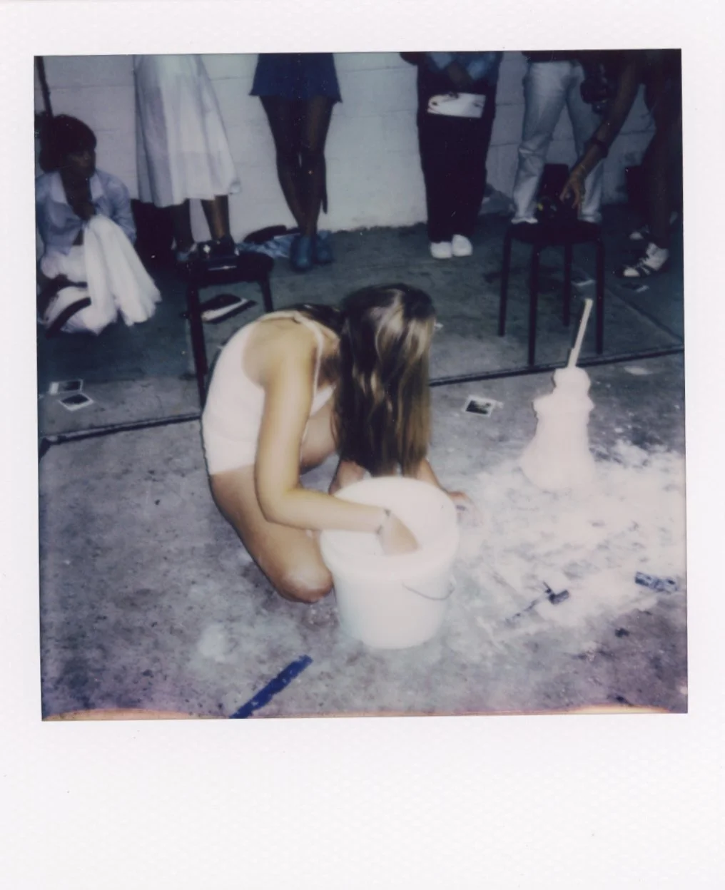 The following images are scans of the polaroids from my 2024 multi-media performance piece RE-MAKING. These polaroids were taken by the hands of audience members and now exist as material documentation of their point of view—of their “hand” in the making and re-making of my subjectivity (as well as their own).